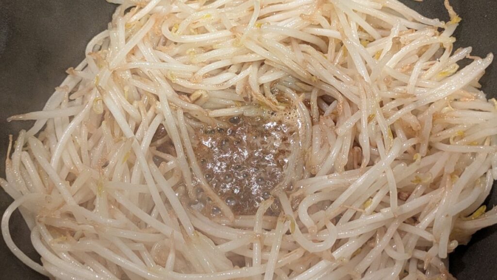 もやしが、焦げ目をまといながら火が入ります。