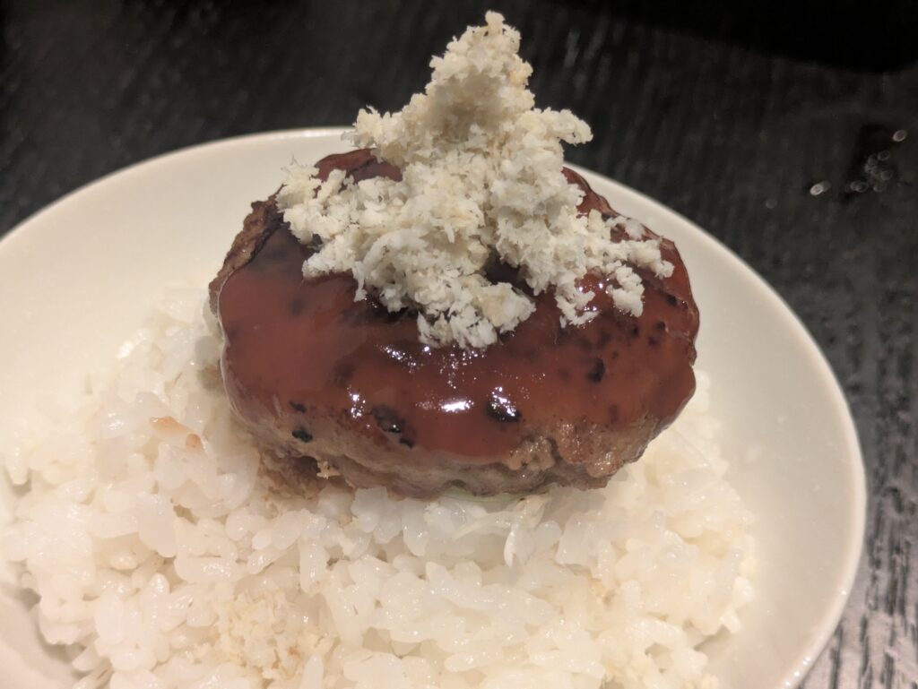 照り焼きソースにおろしたて山わさび、そしてハンバーグ。